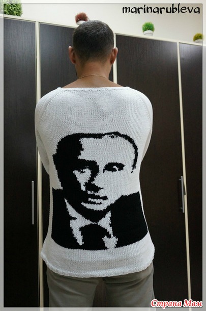 Значит давненько(лет пять назад) меня муж попросил связать ему пуловер... да не с кем-нибудь а с нашим президентом!!! Я долго отбрыкивалась... ну не люблю я вязать жаккард...