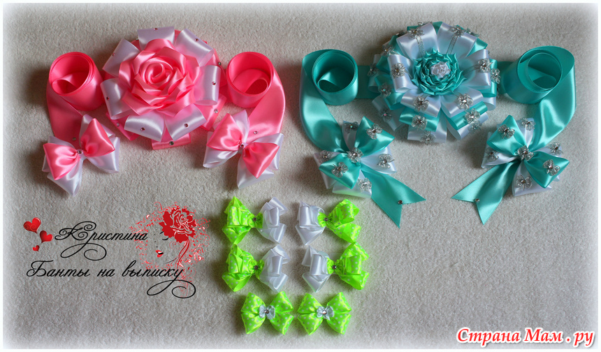 А так же я сделала два банта для вязанных пледиков на выписку)))