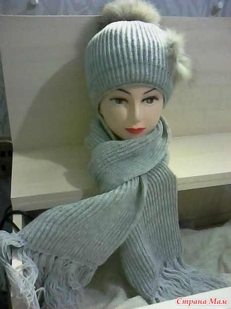 . вязаный комплект шапочка и шарф