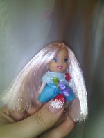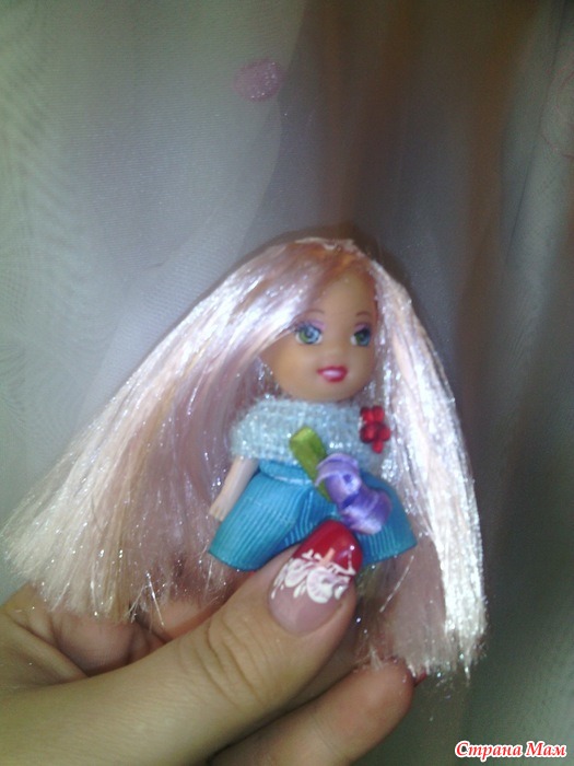 Привезла сувенир доче, купленная куколка под шапочкой оказалась "рысой" - пришлось часик повозится.