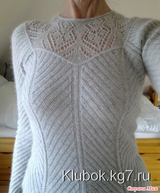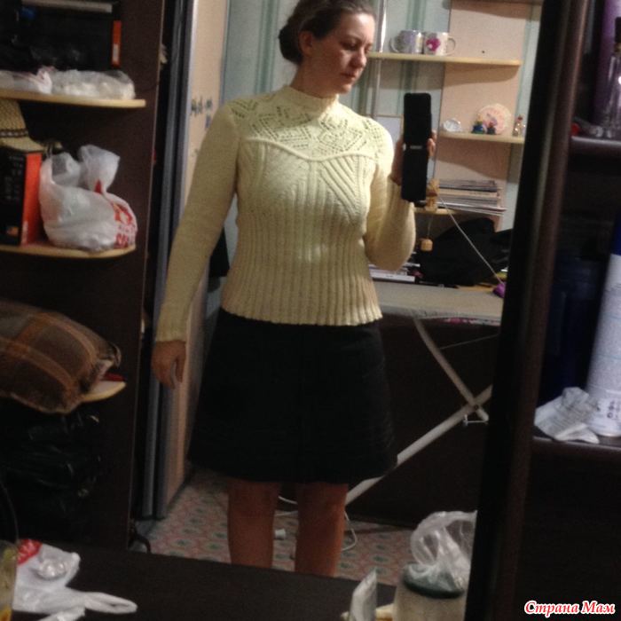 Забыла сказать. Очень сложно давался мне этот рисунок по этой схеме, так корява она составлена и непонтяно. Сходила я в гости к подружке (она давно вяжет и объяснила как нужно его вязать - не по схеме а по фото) И вот теперь мне и схема не нужна и так знаю как нужно вязать. Долго думала как же делать прибавки, На спинке и спереди я их сделала по разному. как и убавки на талию тоже сделала по разному, хотелось посмотреть как будет лучше, а перевязывать не хочется чтоб все одинаково было, и так и так не плохо да и сильно уж не бросается в глаза. Пусть первая кофточка будет такой вот разной