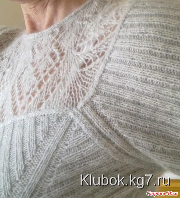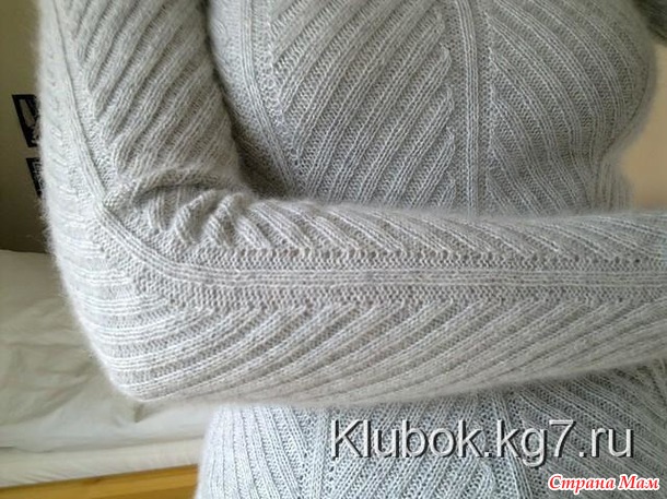 я ее перевязала полностью. Связала перед. Показался узковат, решила пусть будет спинка, а перед сделаю побольше (где то читала что для спортивных свитеров делают перед немного шире для удобства), связала сшила, понравилось. Связала кокетку на спицах №3 (меньший) и 6 рапортов вместо 8ми. Сшила. Сзади на спине получился огромный пузырь, долго думала и ко всем приставала как и что и почему. В итоге сказали что надо спинку немного перепришить к кокетке, и плюс пришить надо не до вершин (по узору) как на фото, а до проймы. Конечно уже уголков не получилось, но смотрится и сидит хорошо. Но пузырь все равно остался. Связала рукава как придумала, оказалось узковатые, у меня между плечом и локтем как то сильно крупновато, и от локтя я стала прибавки делать примерно через 2-4 ряда. Довязала до проймы гладью рукав, а дальше нужен окат, как его вязать??? Открыла книгу Максимовой "Азбука вязания 90г." нашла описание как вязать и связала окат. Полчился сильно длинный окат. Мелком при примерке на одном рукаве начертила линию какую надо. Один рукав стал лекалом а второй распустила и перевязала уже по лекальному, ну и потом второй распустила и перевязала. Теперь вопрос как все это сшивать. Не ложится красиво рукав в пройму :-( да и сшит сам рукав крючком не красиво. Теперь нужно придумать как сшивать рукава чтоб красиво все смотрелось и как вшить рукав в пройму. Еще и горловину надо перевязать уже наверное в 6й раз. сначало было узковатое горло и одевалось очень сложно и туго, потом нашла нужную ширину, но теперь душит, нашла что нужно вязать росток. Связала росток опять узкое горло получилось..."эх, раз, да еще раз, да еще много, много, много, много, много, много раз..." Надеюсь к НГ все таки закончу свой квест по вязанию кофточки