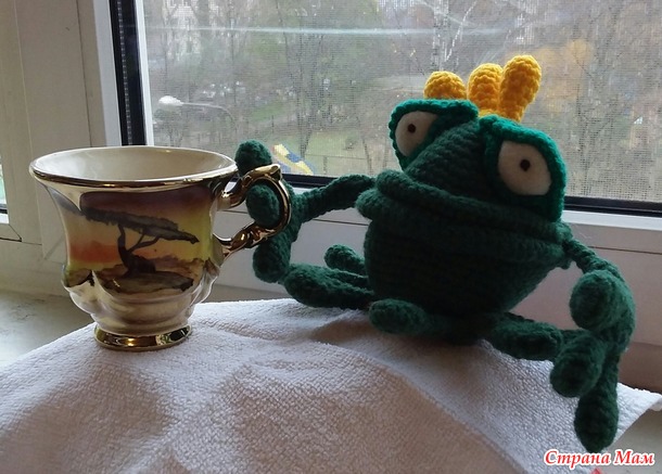 Моей мечтой является Заяц Кекс, но в то же время смущают его размеры, боюсь, что на полпути охладею. Поэтому решила начать с милого Принца Лягуха. Его размеры не столь впечатляющи, но обаяния не меньше!