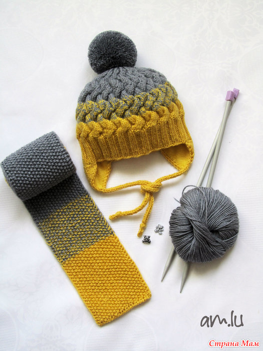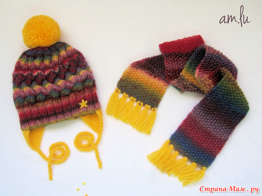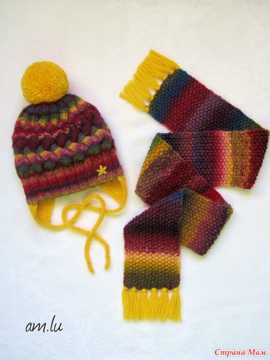 А дальше из разной пряжи... комплект, всем известная модель http://domosed-ka.ru/vyazanie-detskoy-shapochki/