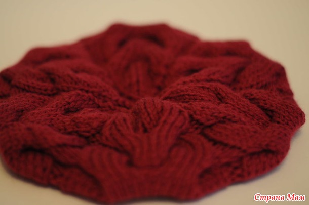 Шапка. Начало - полая резинка, затем 2х2, в последнем ряду прибавки для симметричности узора из кос.