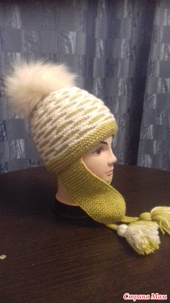 Пряжа Наташа, в две нитки, спицы 3,75. Узор ’’Продолговатые ячейки ’’. источник:http://www. stranamam.ru/post/8631876/ По моей плотности и по узору набрала 80 петель. Связала платочной вязкой 10 рядов(вязала на круговых спицах). Затем начала вязать узором. Макушку запускала произвольно. Высота 22 см. Помпон съёмный на кнопке. Будут вопросы по модели, отвечу!