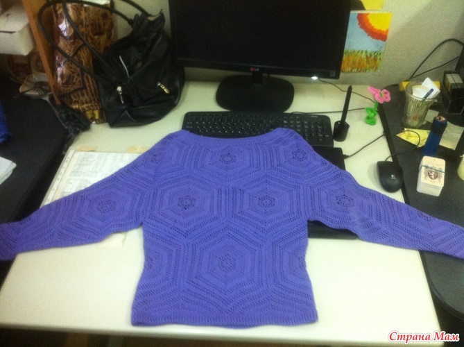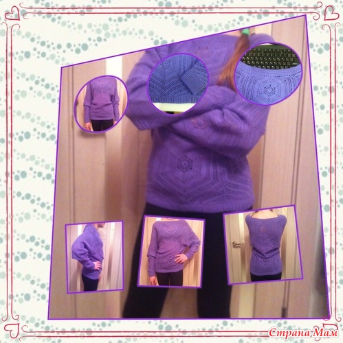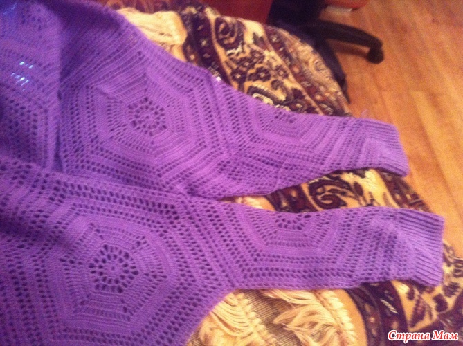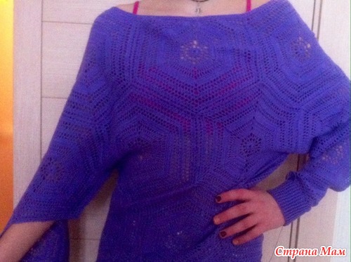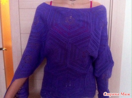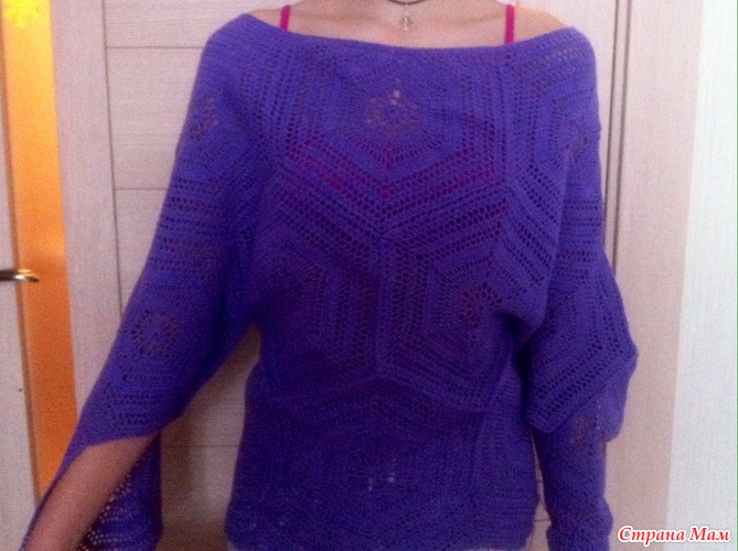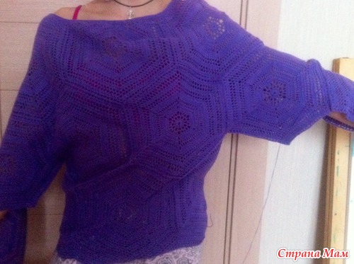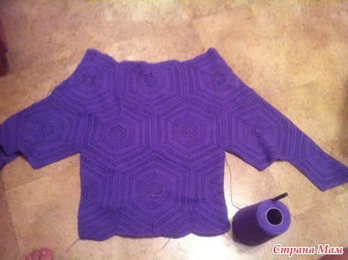 Изделие вяжется из шестиугольных мотивов, которые потом собираются между собой. По поводу схем: к фото этого джемпера прилагается куча различных схем, но ни одна из них на мой взгляд, не является точным попаданием. Но вы можете повыбирать.