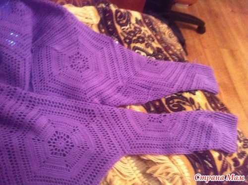 Отчитываюсь тут. Мотивы отвязала. Изделие собрала. Подвязала треугольники по низу изделия и на одном рукаве, включая манжет резинкой 1/1.