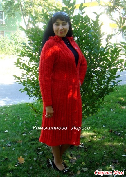 Всем-всем доброго дня! Связалось пальтишко, Танец огня, Работа авторская. Несложный узорчик-чередование изнаночных дорожек с дорожками из лицевых и изнаночных петелек. Вертикальные полосы рисунка дают возможность расширить полотно от бедер. Пальто связано в 2 сложения. Пряжа CHARISMA YARNART (200м в 100г) 80% шерсти+ "Yarnart Angora De Luxe". Расход 1450г. Сп.3, 3.5. Спасибо всем за просмотр! Удачи и вдохновения!