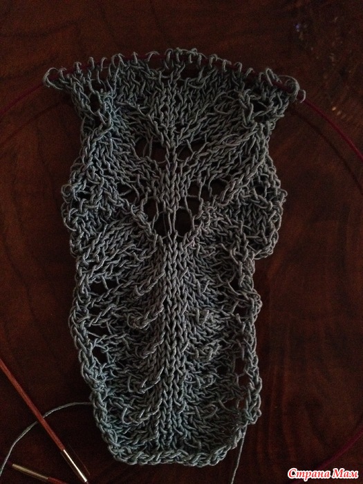 обратите внимание, имеются изнаночные ряды с вязанием рисунка.