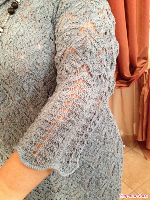 на рукаве не убавляла ни одной петли, стянулся сам за счёт различной плотности рисунка
