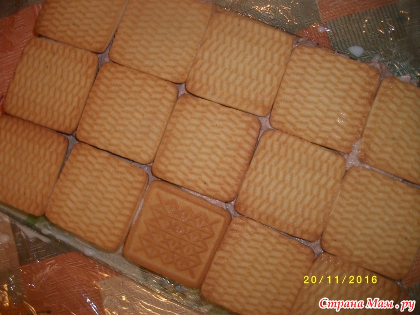Печенье обмакивать в молоке и выложить в три ряда
