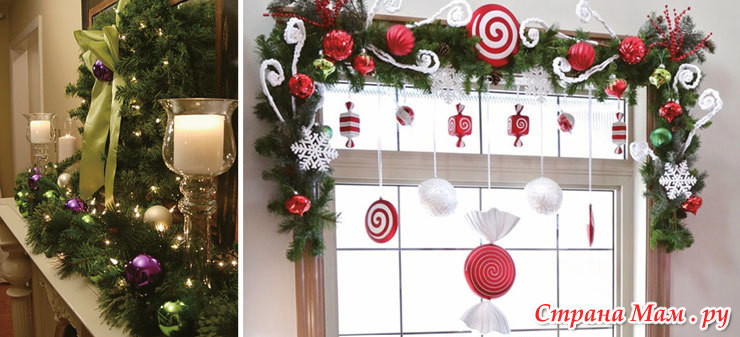 В этом году есть в планах сделать гирлянды из мишуры на карнизы.
