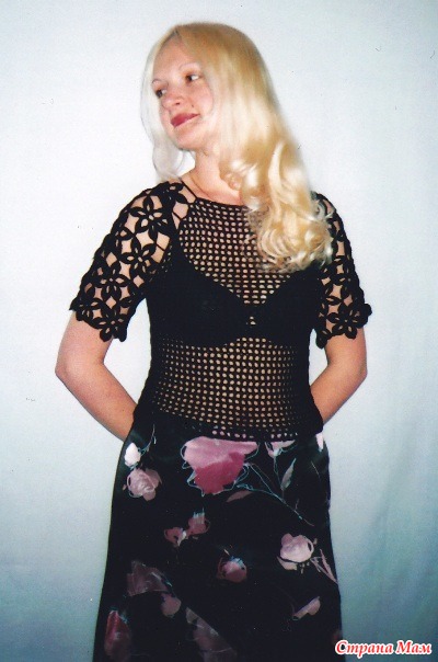 Нашла сегодня в фотографиях эту кофточку, я ее вязала на заказ. Как видите, отличный вариант на жару! А если еще связать из хлопка! Кстати, в белом цвете тоже хорошо смотрится, я вязала такую на заказ, но, к сожалению, нет фото.