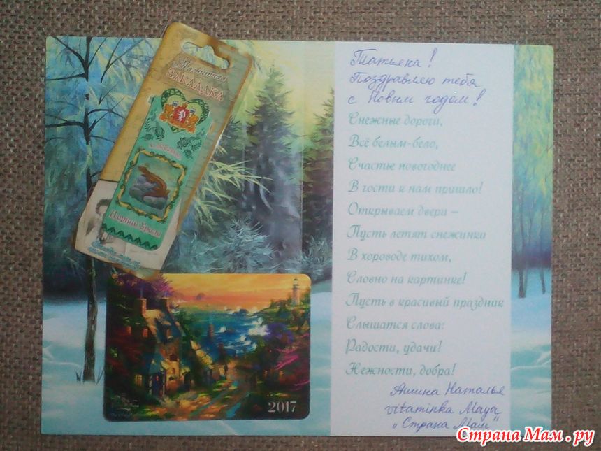 А в пакетике... Полотенце, кашаладки, открытка с поздравлением, магнитная закладочка с Хозяйкой медной горы, календарик...