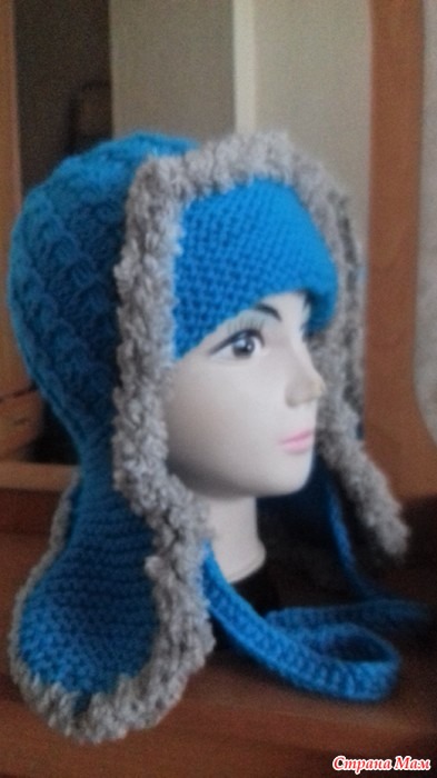 Пехорка популярная: лоб -25п, уши по 17 п, затылок - 9 п. Итого:68 п. связала сначала уши, добавила петли на затылок, провязала ушки и затылок 8 рядов платочной вязкой.