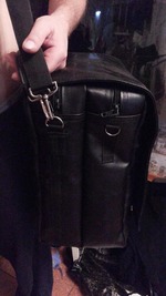 У нас был не обычный заказ, как в размерах, так и в материале. Незнаю как правельно назвать изделие чемодан, сумка, или рюкзак. Размер этой сумки был 30-40 см, и два отделения по 10 см. Материал заказщика - кожа (дубовая, старая, толстая кожа...)