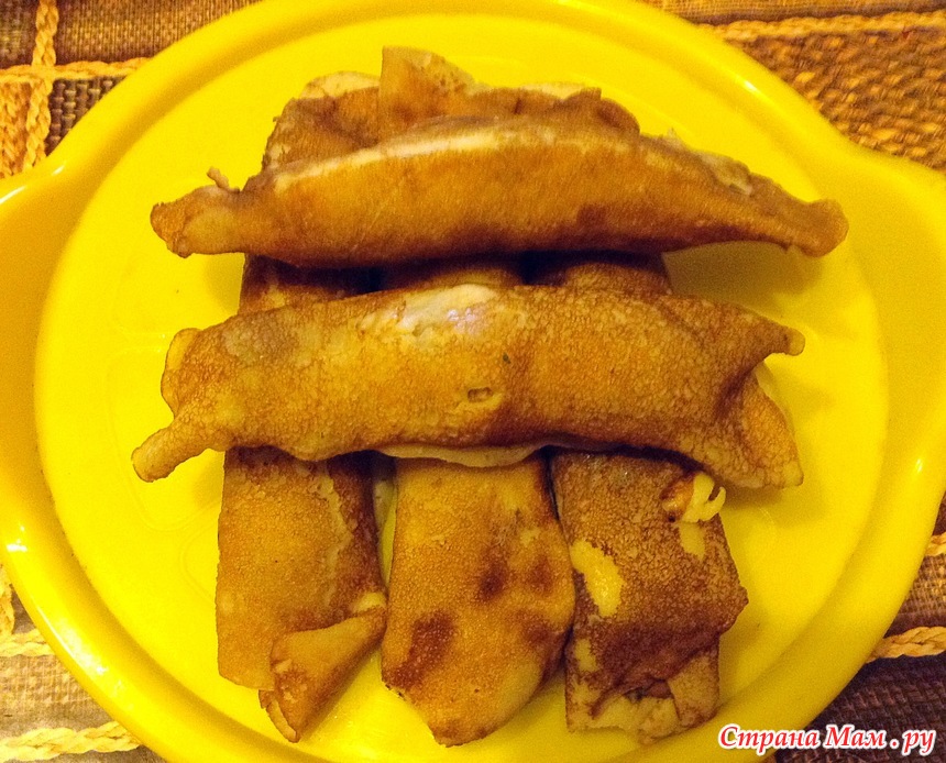 5. Все приготовленные "трубочки" укладываем как поленицу на тарелку. Я делаю обычно 3-2 слоя.