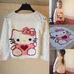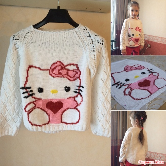 Связалась у меня кофточка Hello Kitty для моей доченьки по "Он-лайн игра презент от Мамины Детки № 13 Джемпер спицами "Дочки-сыночки""Источник: https://www.stranamam.ru/album/9276453/?page=2.