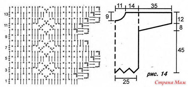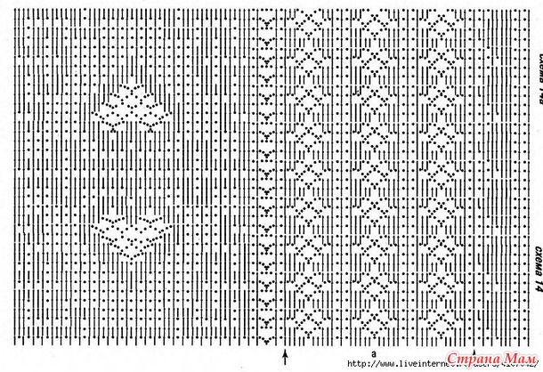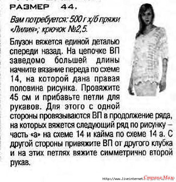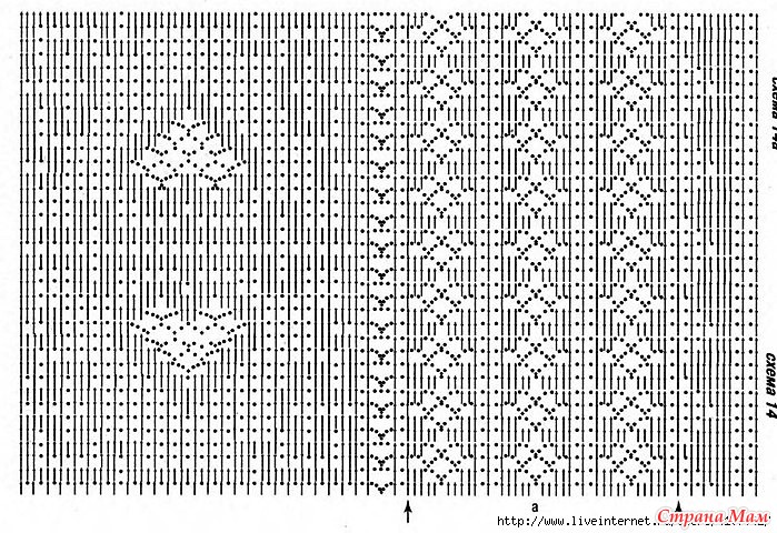 Эта свободная туника с зубчатым подолом и рукавами вяжется филейным узором. А на спинке и переди оригинально смотрится узор в виде сердечек. «Журнал мод №438 2003г» Читать полностью