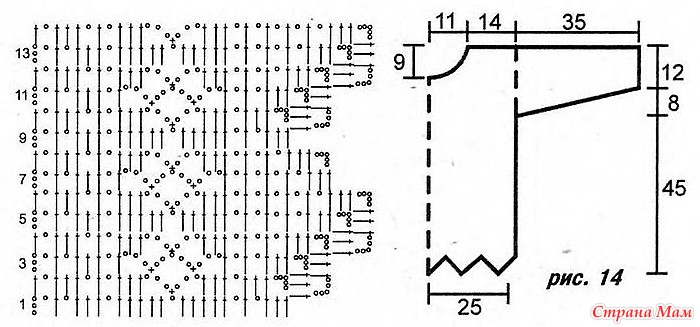 Эта свободная туника с зубчатым подолом и рукавами вяжется филейным узором. А на спинке и переди оригинально смотрится узор в виде сердечек.