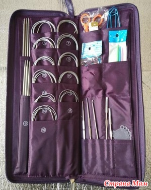 Ножницы хорошие, пользуюсь давно и режут хорошо без заточки. Всякие аксессуары типа сантиметровой ленты, маркеров и тд приличные. Хранить удобно. Еще в обложке два внутренних кармана есть, напихала туда свои запасы спиц.
