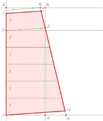 13. Теперь преобразуем ее в юбку до пола, но от бедра для этог от точки А3 откладываем вниз такое расстояние какое вы считаете приемлемым для носки юбки на бедрах, например 5 см... значит А3 -Г =5см, от А2 откладываем такую же величину и ставим Г1, соединяем Г и Г1. Фигура Г-Г1-Н3-Н -это расклешенная юбка в пол, но на бедрах. Она выделена красным. и залита розовым.