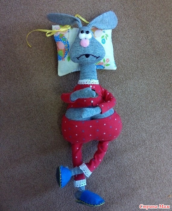 Увидев сшитую зайку Ирины (дарящая мир), так тоже захотелось такую же и вот она такая умница организовала совместник "https://www.stranamam.ru/post/12305847/" и я присоединилась, дня четыре собиралась духом и собравшись села и за один вечер сшила, что у меня в первые. Она конечно получилась не точь в точь и не идеальная, косяков полно, но мне нравится. Использовала трикотаж в пошиве.