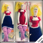 Широко известная Тильда!! Вообще Тильда не имеет рта, только глаза, но попросили сделать полноценную девочку и ей идут губы). В последней решила сделать глазки не узелками, а вставить покупные приливные чёрные глазки, тоже получилось не плохо.