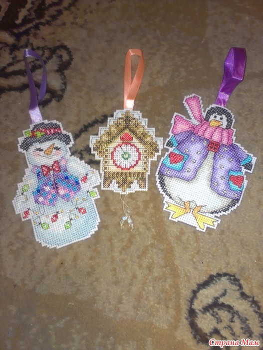 Новогодняя тематика продолжается :) Вышитые елочные игрушки