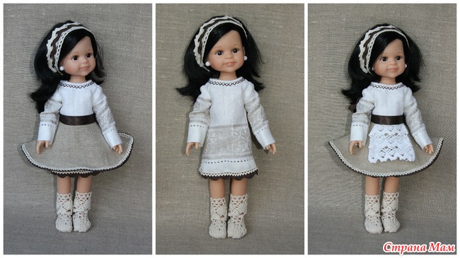 Всем добрый день! Получила мою призовую куколку, которую выиграла в конкурсе "Бал-Маскарад", сшила для нее наряд из льна. Вот, что у меня получилось: