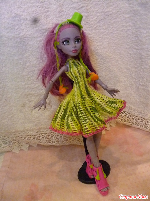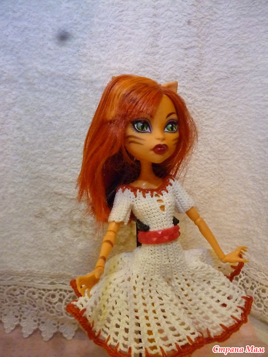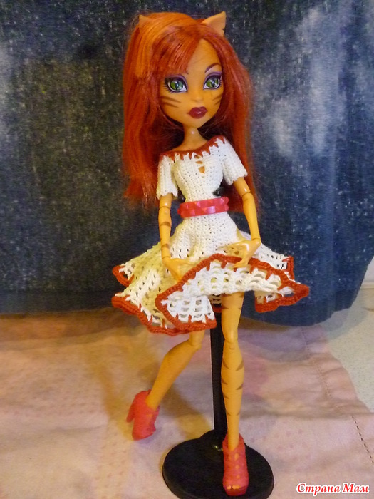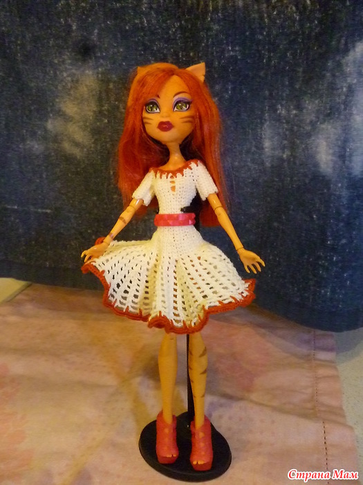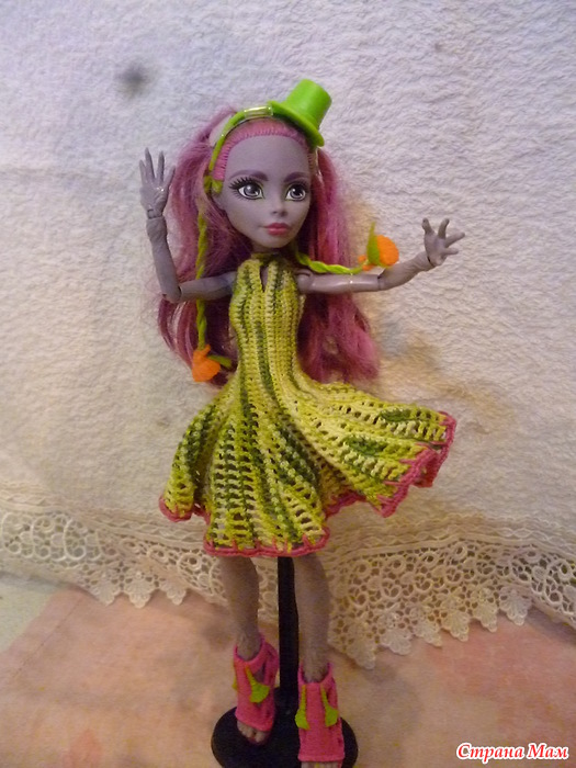 А это Марисоль Кокси - она в Школе Монстров по программе обмена, из селения латиноамериканских бигфутов. Очень яркая и порывистая девушка, и платье ее получилось таким же.