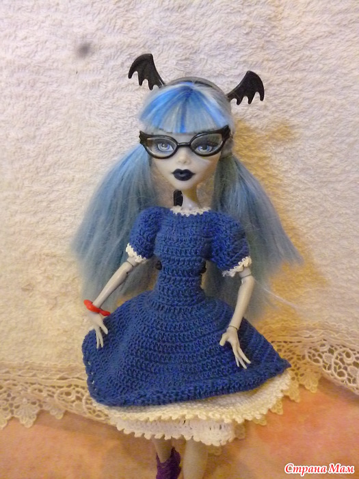 Это это верный соратник и подруга Клео - Гулия Йелпс, она зомби. Самая умная в Школе. Ее платье было для меня настоящим исключением - две нижних юбки крючком!