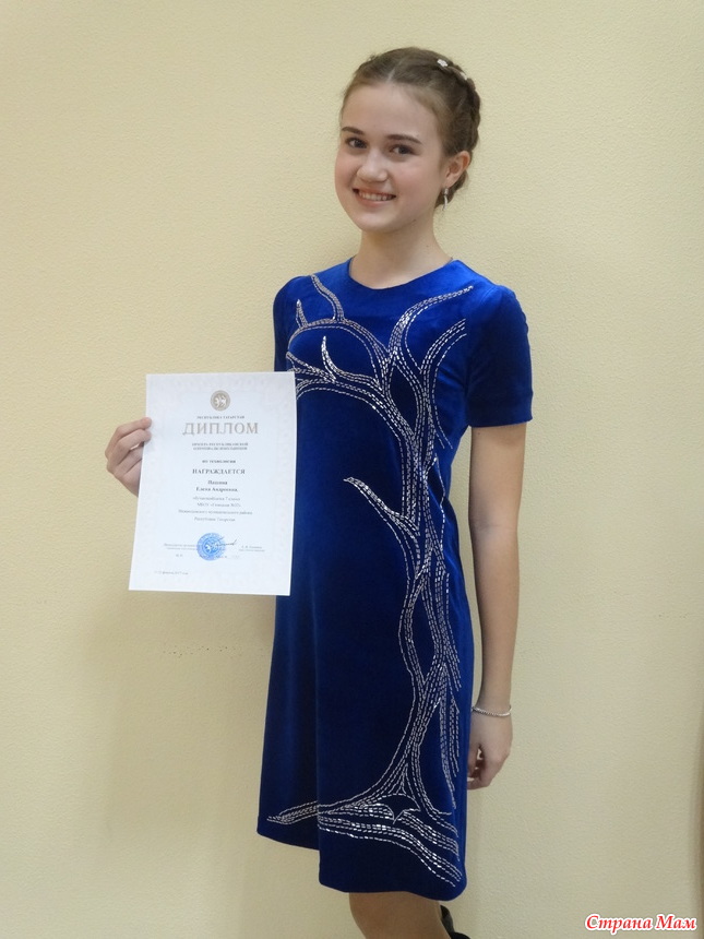 Платье вышивали вместе с дочкой специально к республиканской олимпиаде по технологи. Один из этапов олимпиады - творческий проект. Дочь готовила проект про бисерные деревья.