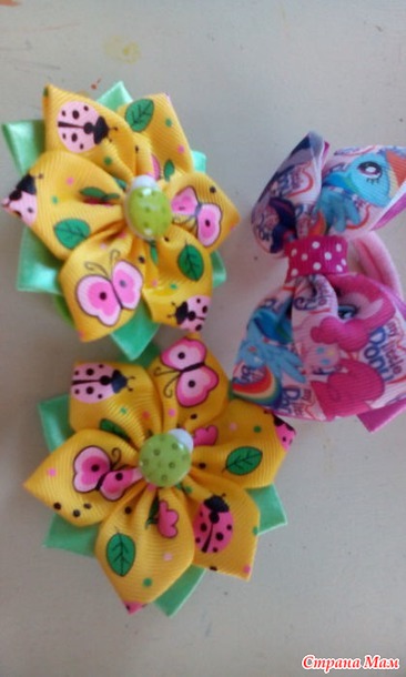 А дочка получила вот такие банты. их было четыре, две пары. но сейчас я один не нашла. как видите, за год с ними ничего не произошло. А желтенькие любит мой сын носить. он любит делать хвостик и очень уважает желтый бант