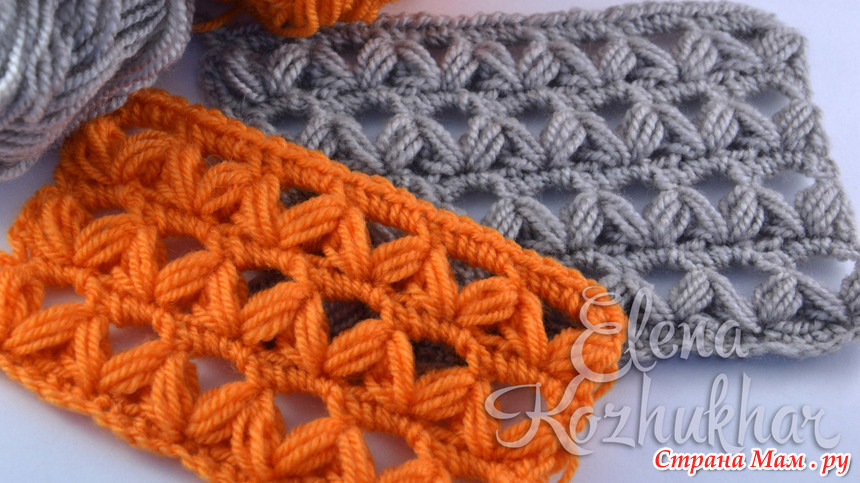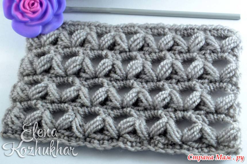 Узор крючком Крылья • Галочки из пышных столбиков • МК в ролике