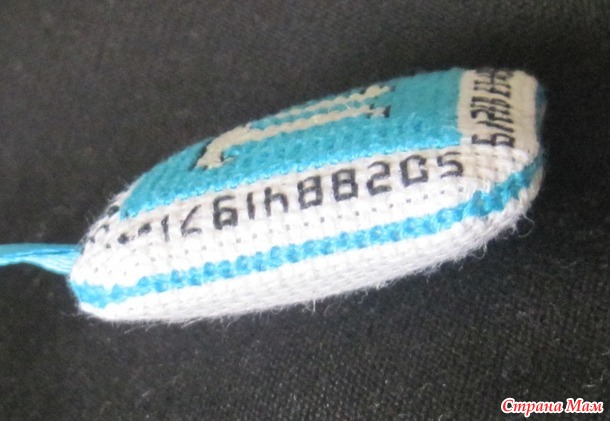 Но долго ей в запасниках не пришлось лежать - надо было вышить небольшой сувенир мальчику, который увлекается математикой и шахматами. Ткань взяла Аиду 16 каунта, мулине Кировское чёрное и ярко-голубое №3010, а для самого значка ПИ выбрала люрекс Adele 80-01, он так красиво блестит под определённым углом и придаёт нарядность работе.