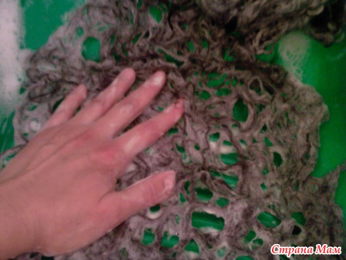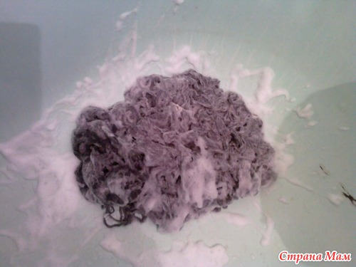 Сначала аккуратно мнем в тазу как тесто, переворачивая.