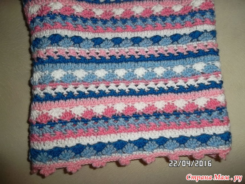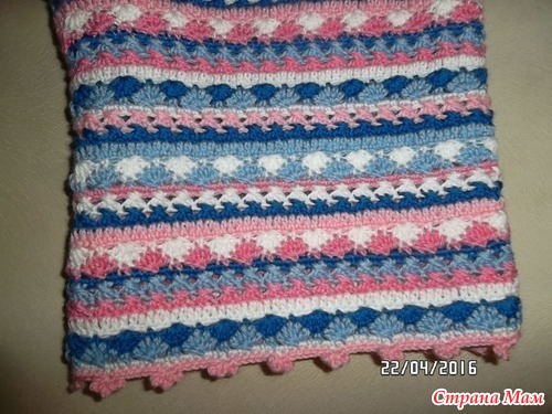 Цвета чередовала каждый ряд, но 6 ряд вязала тем же цветом, что и 5.
