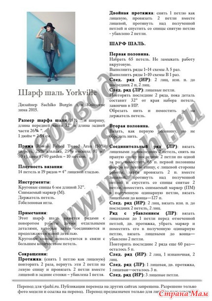 Возьмите все, что вы знаете о шалях в форме V, сделайте ее большой и оригинальной, по сохраните интерес к вязанию, добавив простой ажур, и Вы получите безразмерный шарф шаль от Сашико Бургин.