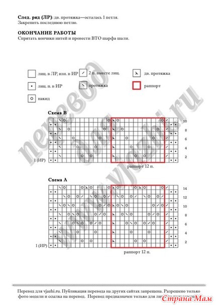 Спрятать кончики нитей и провести влажно-тепловую обработку шарфа шали.
