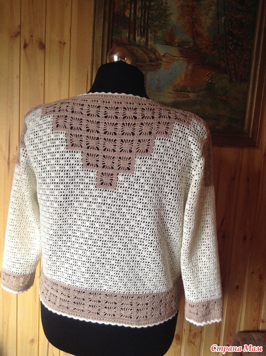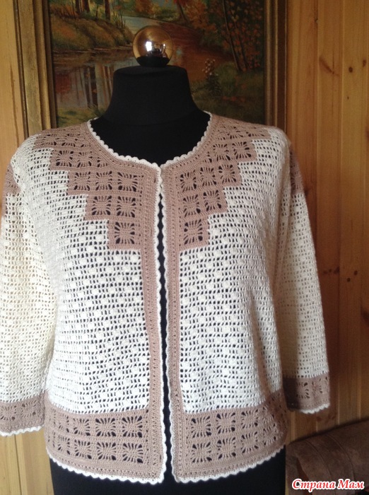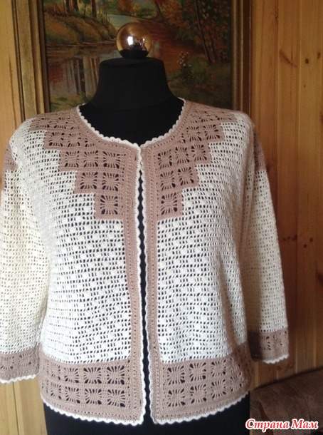 И снова здравствуйте! Сегодня в праздничный день моя постоянная заказчица Надя получила свой жакетик, чему была безмерно рада. Спасибо ей за слова благодарности. И сейчас хочу и вам показать результат моего труда. Вязала из пряжи VITA cotton "Coco",240м/50г,100 % мерс. хл., Крючок 1,5. Расход ниточек 350-400 г. Размер 50. Прекрасного всем настроения!
