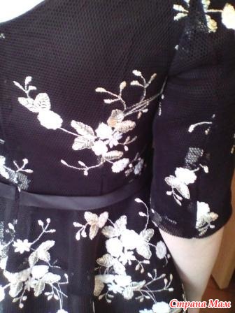 Фото платья не очень - на черном атласном чехле - черная сетка с золотой вышивкой.