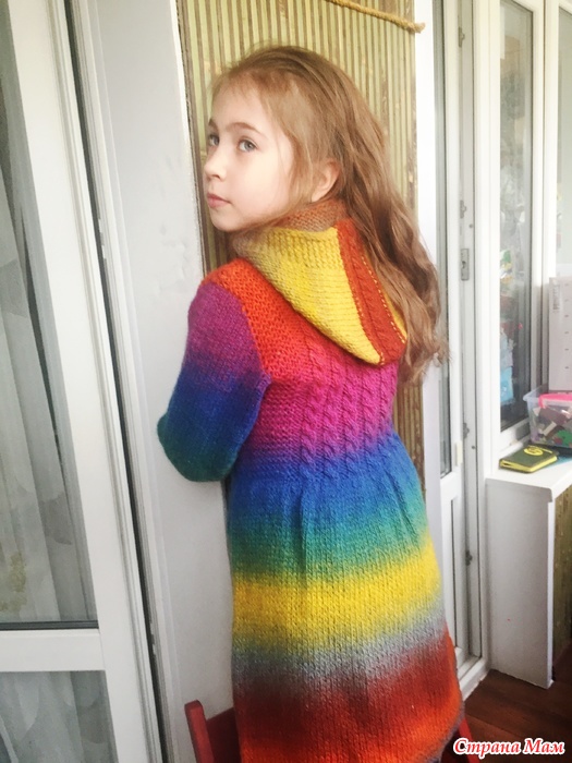 Из любимой Дундаги получилось чудесное яркое пальтишко для дочки.