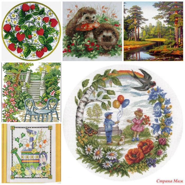 Сюда входят сюжеты лесные, садовые, ягодные, летние птички и звери, а так же все что связано с лесом, садом и огородом.