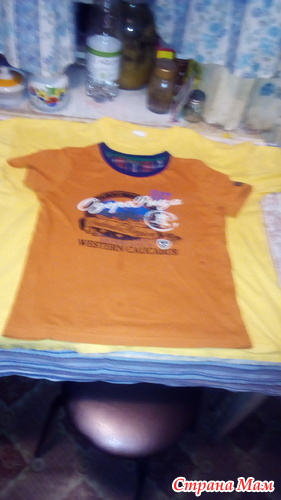 Девочки, подскажите в чем лучше? Ребенок завтра выступает от школы, ему там выдали футболку огромного размера, плечевые швы на уровне локтя, в ширину на меня налезет без проблем, а я 58 р-р ношу. Срочно бросилась покупать, но все, что я нашла это футболочка на два размера меньше ребенкиных, в длинну нормально, все равно в джинсы заправляет, но очень уж в обтяжку и цвет поярче. Сыну и мне нравится второй вариант, папе первый. Для сравнения фото, правда качество не очень. Ни в чем другом выступать нельзя, остальные дети будут, скорее всего, в первом варианте (если их мамы не позаботятся). Но сын солирует, по этому наверное можно и отличатся от других немножко. В общем, мы на распутье.