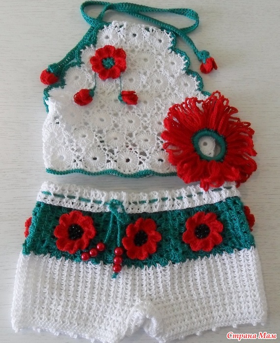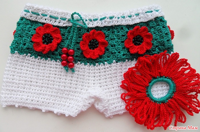 соединили несколько мотивов.. и хоть юбочку.. хоть шортики.. готовы, основной узор -просто галочки, они плотно смотрятся и быстро вяжутся