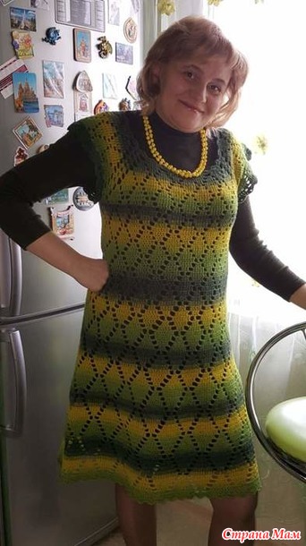 И вот такое платье связалось из кауни 8/1, чуть больше 400 грамм ушло, крючок мой любимый Кловер 2,5.