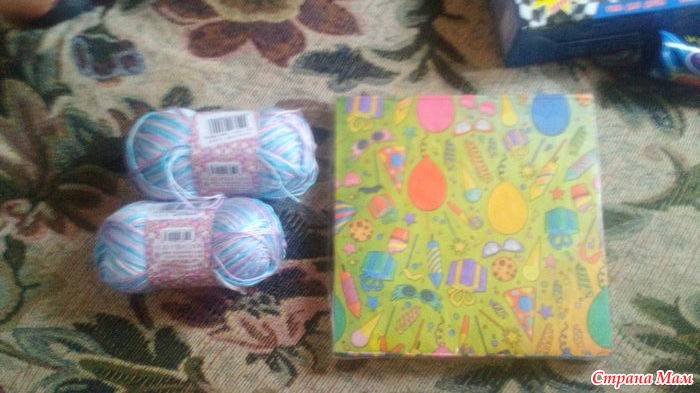 Салфетки праздничные и кое что поставившее меня в тупик. Что это за ниточки? Что из них можно сделать? Но все равно большое спасибо нашей дарительнице! Ребёнок доволен)