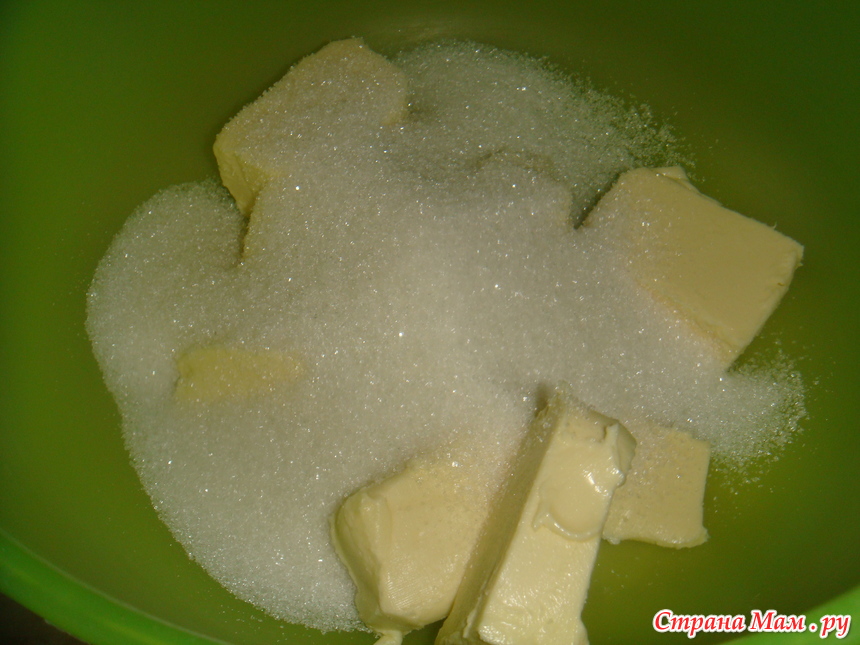 Сахар растереть с маслом.